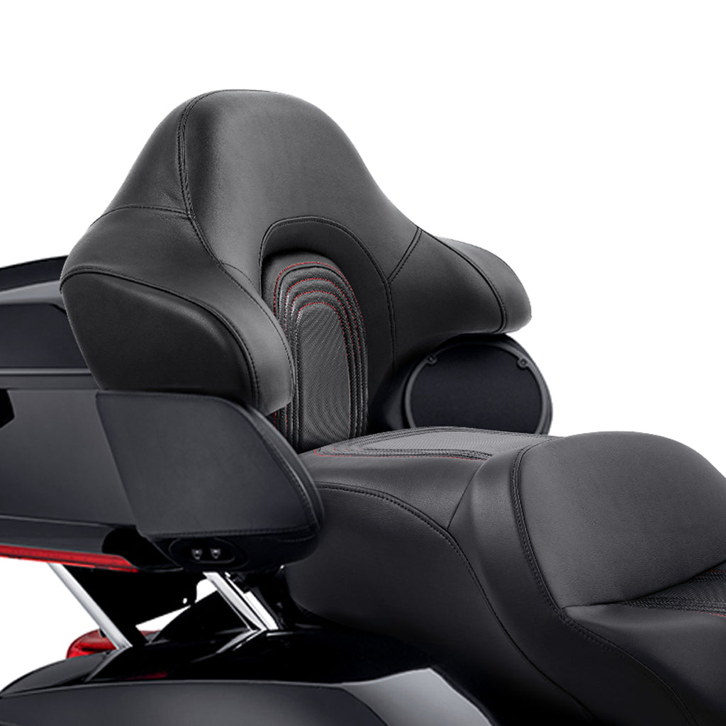 Wrap-around King Tour-Pack Backrest Pad is shaped to surround your passenger in comfort. The curved shape cradles the back, and the integrated side wings fit naturally beneath your passenger's arms for added support.