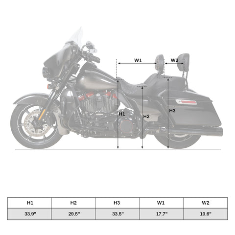 Add back support for long-haul riding comfort. The contoured backrest pad is shaped to provide full lower back support without pushing the rider forward, and the slim profile offers the passenger a few more inches of room.