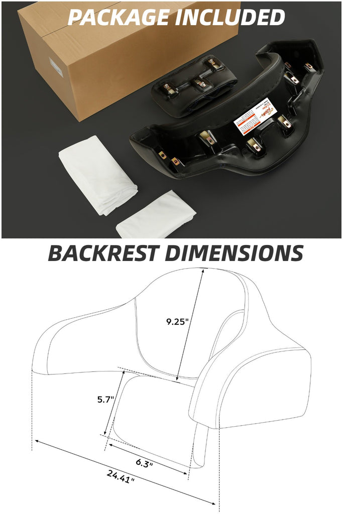 The passenger backrest and pad can help the passenger keep in position during the riding and brings a comfortable driving experience. What's more? The passenger pad can spread tailbone pressure and increase circulation. The passenger backrest can provide good support for the passenger.