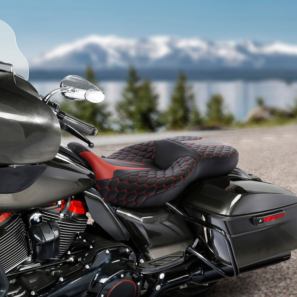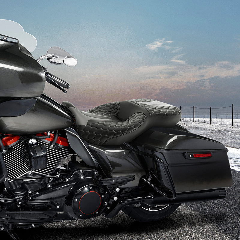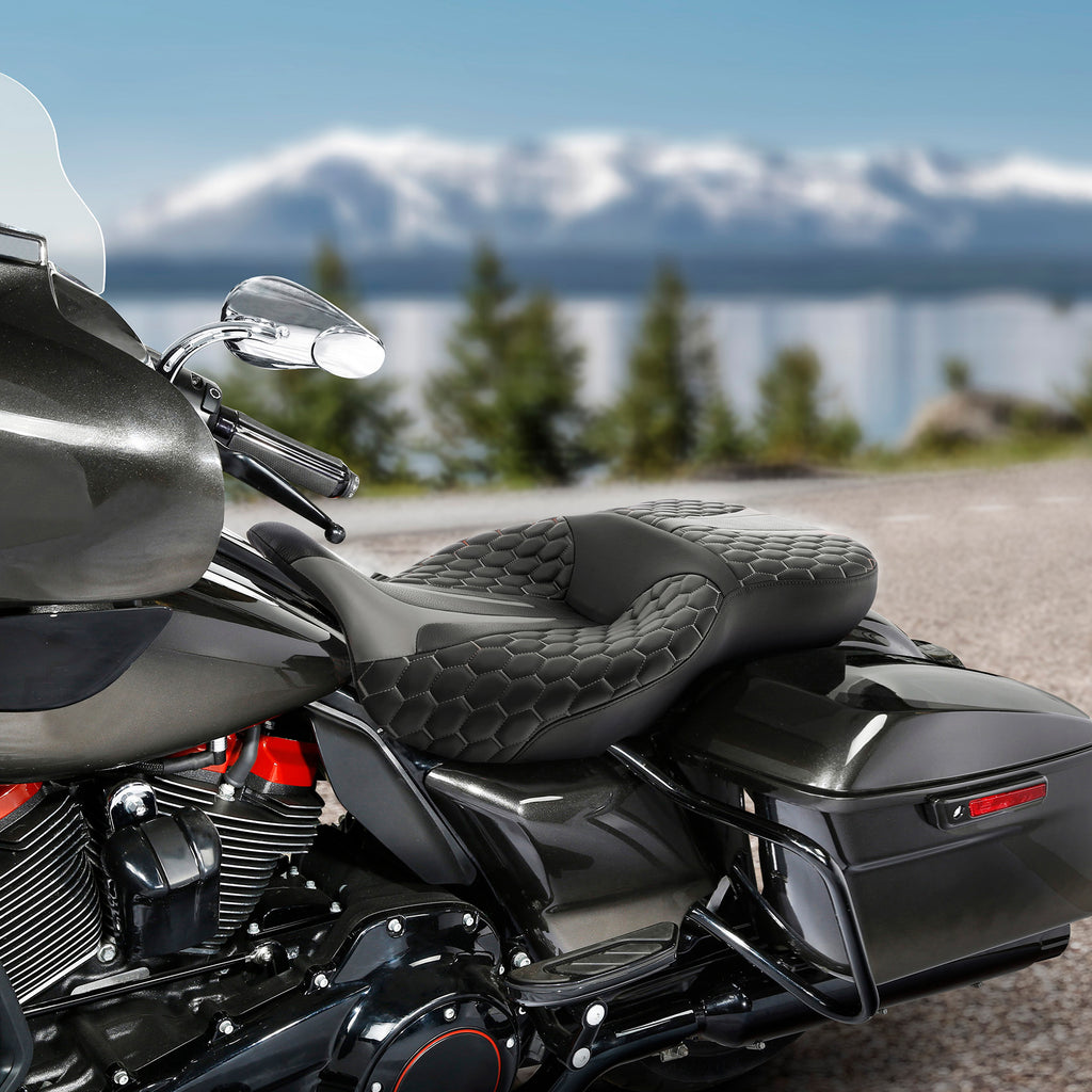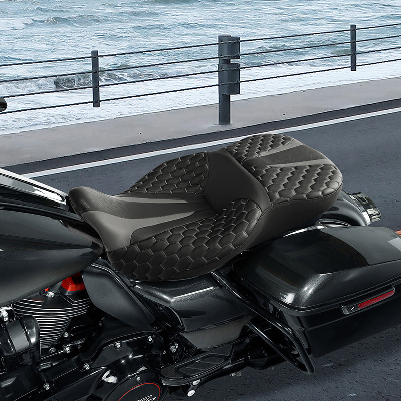 C.C. RIDER Touring Seat 2 Up Seat Driver Passenger Seat Homeycomb For Harley CVO Road Glide Electra Glide Street Glide Road King, 2009-2023