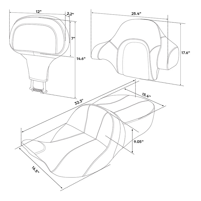 Add back support for long-haul riding comfort. The contoured backrest pad is shaped to provide full lower back support without pushing the rider forward, and the slim profile offers the passenger a few more inches of room.